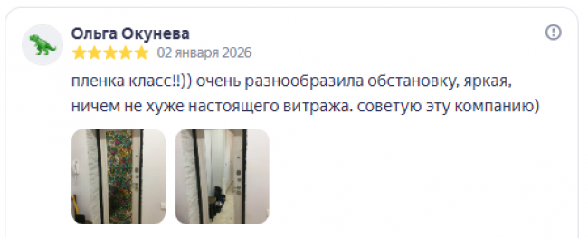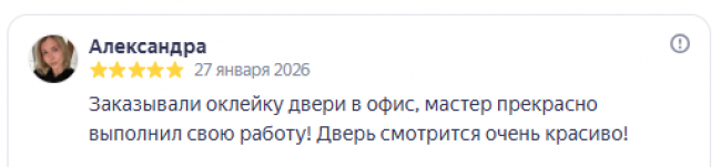 Виниловая пленка, с которой работают специалисты MyDecor подходит для оклейки стеклянных, пластиковых, металлических, деревянных и любых ровных поверхностей. Это прочный материал, который выдерживает перепады температур и повышенную влажность, а значит его смело можно использовать для оклейки входных дверей, оконных рам, витрин и фасадов. Виниловая пленка не только меняет внешний вид вещей, но и защищает их от механических воздействий и повреждений: сколов, трещин, царапин.